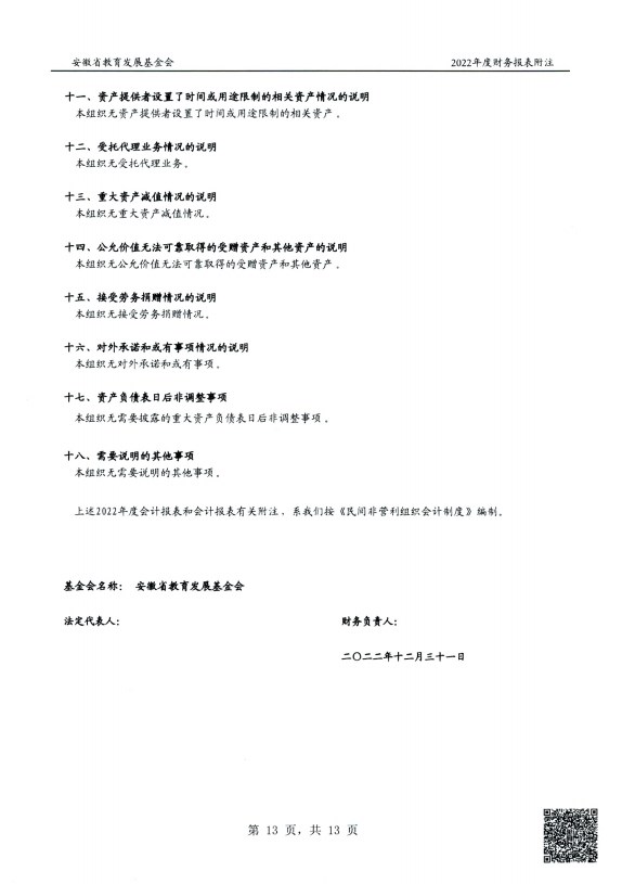 安徽省教育发展基金会 2022 年度财务报表审计报告