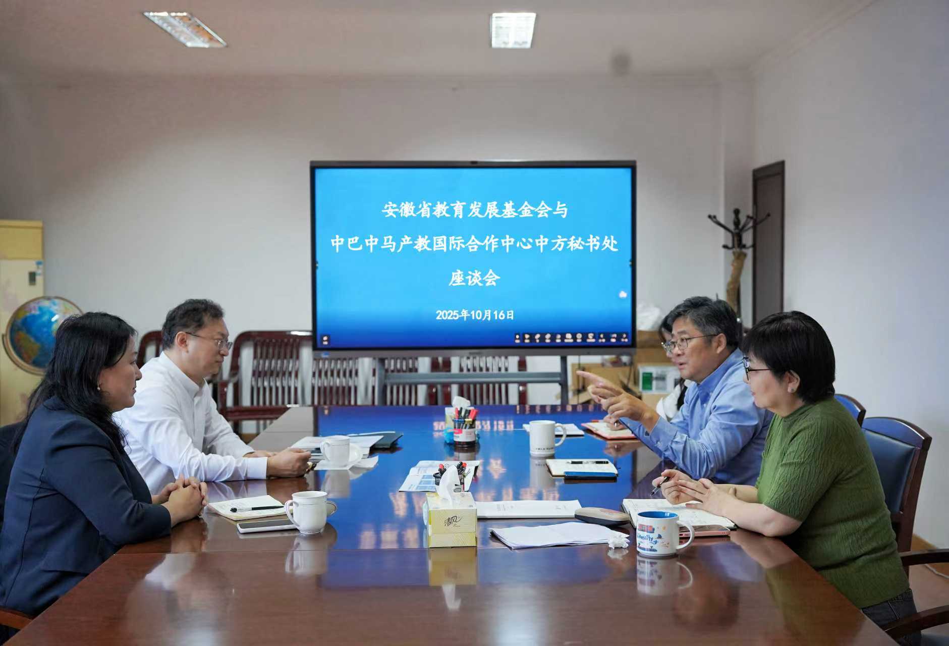 李劲松介绍了中巴、中马产教国际合作中心的发展概况,重点阐述了可在安徽省推进的合作项目与实施模式。他表示,唐风国际教育集团多年来深耕国际教育领域,致力于搭建“职教出海”与“产教融合”的国家级合作平台,积极探索CCTE模式双学历联合培养、中文+职业技能中心及短期培训等项目。他希望以即将召开的中巴、中马产教国际合作交流研讨会为契机,与基金会深化合作,共同推动安徽教育国际化迈向新台阶。